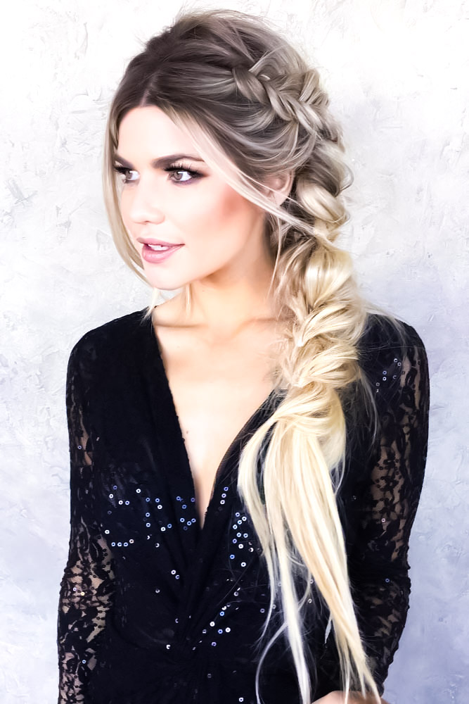 Je vous recommande de garder quelques mèches autour du visage pour adoucir la mâchoire. Les cheveux ondulés, chignons bas bohème, couronne de tresses ou coiffure asymétrique seront vos atouts. Attention aux coiffures qui dégagent le visage et qui risque de durcir vos traits et d’emmener un effet trop strict!